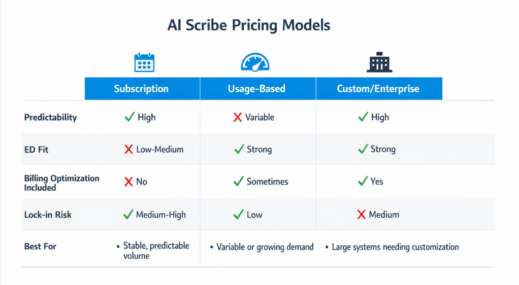 Subscription, Usage, or Custom: Which AI Scribe Pricing Model Actually Delivers ROI for Your ED?