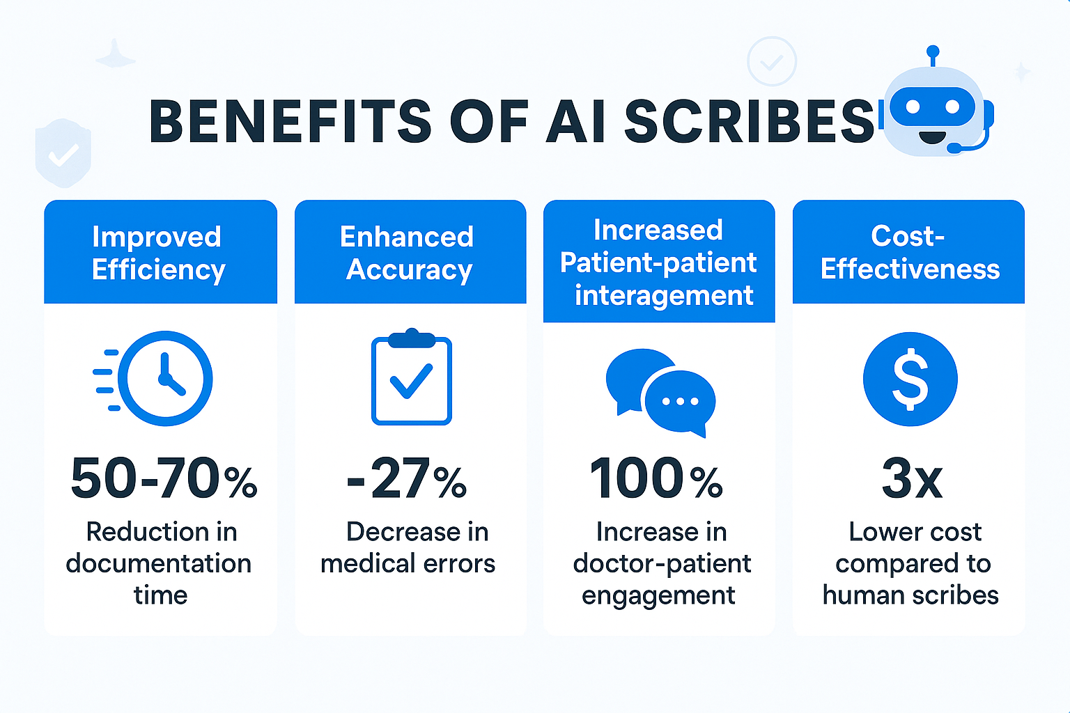 Doctors and nurses spend a lot of time on documentation, often taking them away from patient care. Fortunately, AI Scribes can help! They do this by transcribing conversations and offering clinical recommendations automatically allowing healthcare staff to focus more on their patients instead of paperwork. And unlike traditional human scribes, AI scribes work in the background, reducing manual data entry without adding extra steps. As a result, they save time, improve accuracy, reduce burnout, and simplify daily workflows.